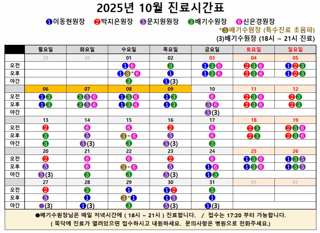 진료시간표